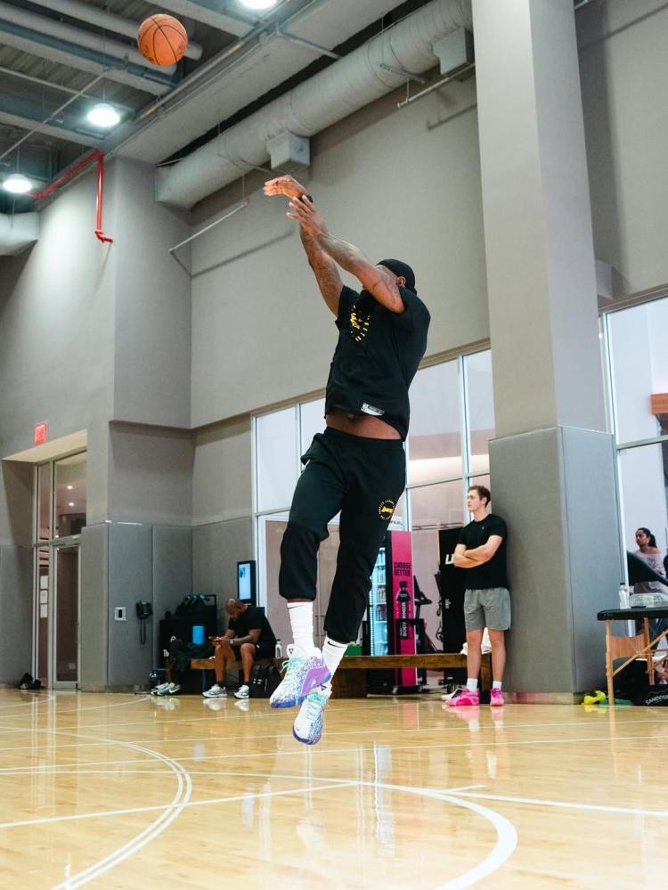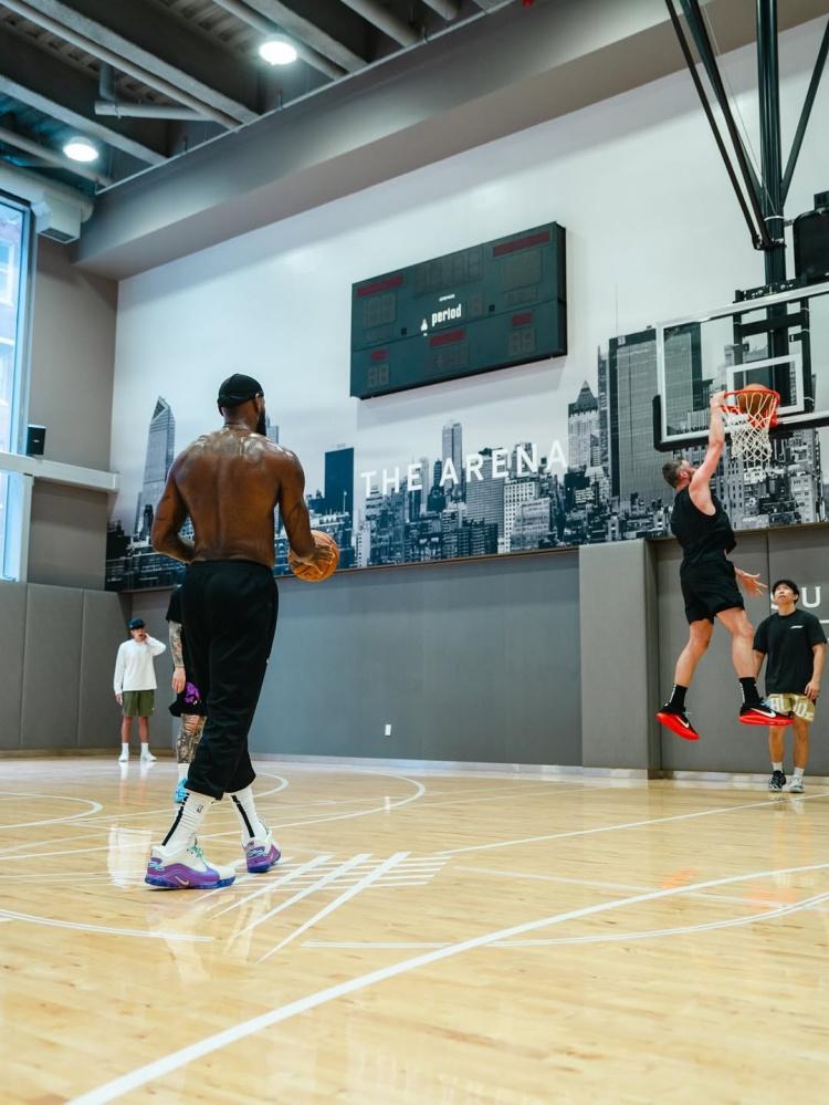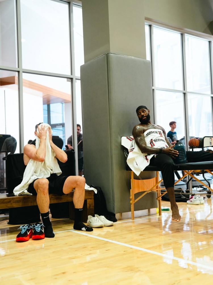 直播吧9月4日讯 今日,摄影师Next Subject更新Instagram,发布了一组他在6月拍摄的詹姆斯与乐福在纽约的训练照。