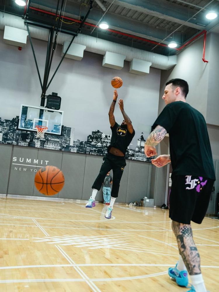 直播吧9月4日讯 今日,摄影师Next Subject更新Instagram,发布了一组他在6月拍摄的詹姆斯与乐福在纽约的训练照。